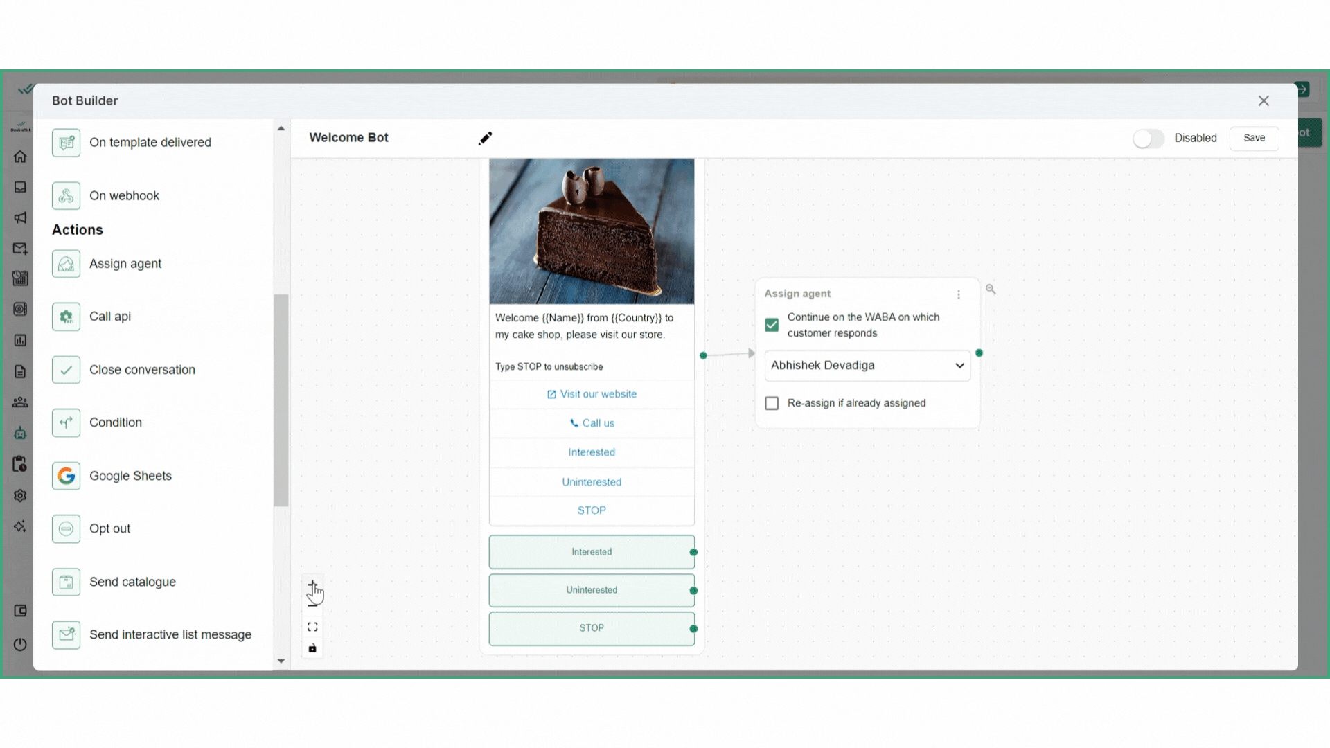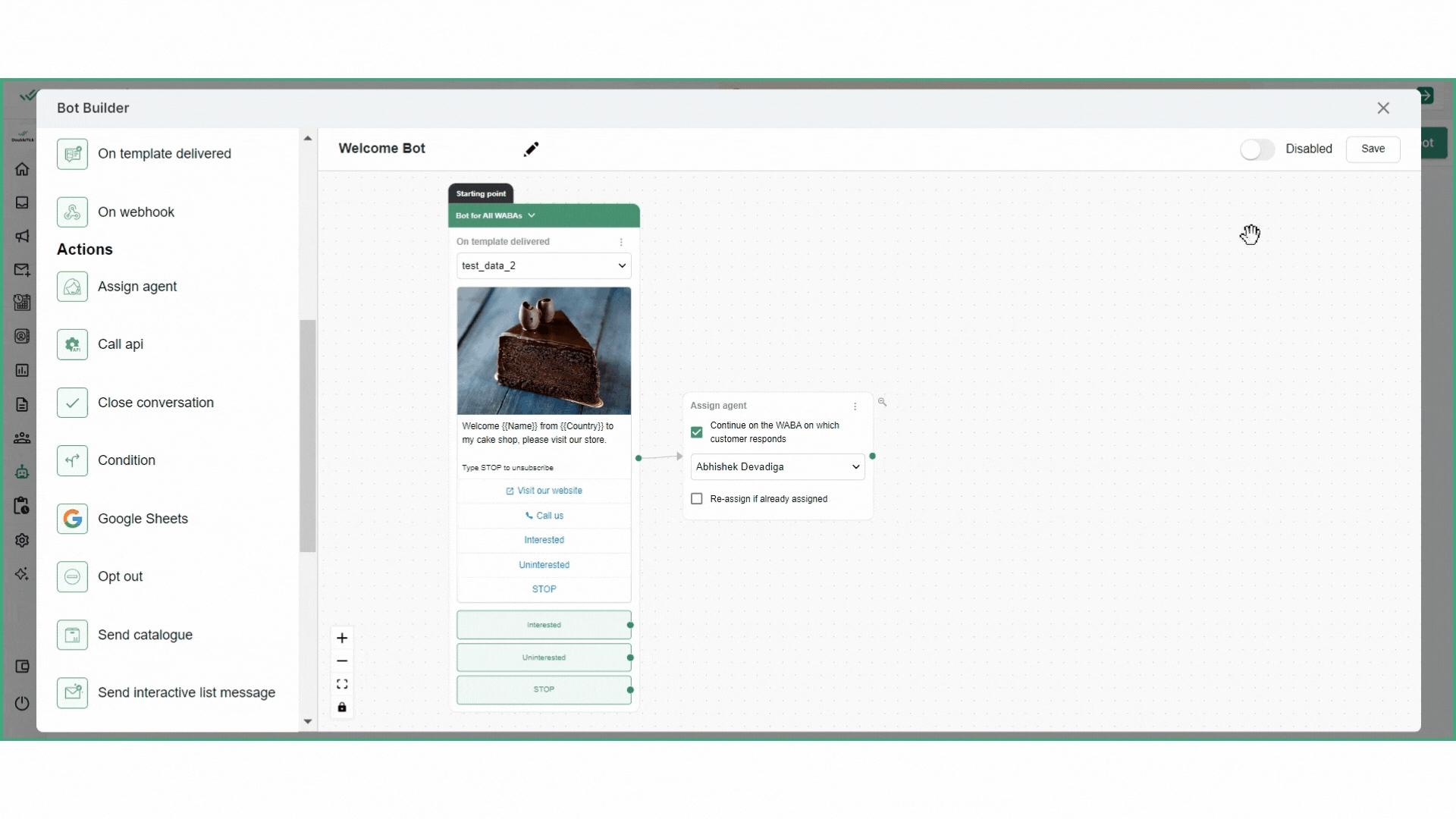 To rename the bot, enter the new bot name on the top left next to the edit icon