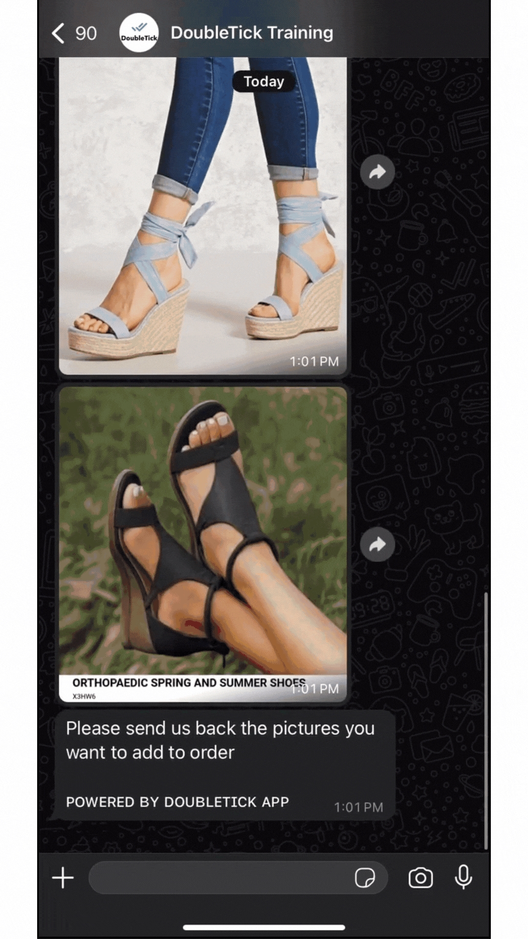 To order any item from the catalog, simply select and forward the image in the chat again. The product will then be auto added to your cart.