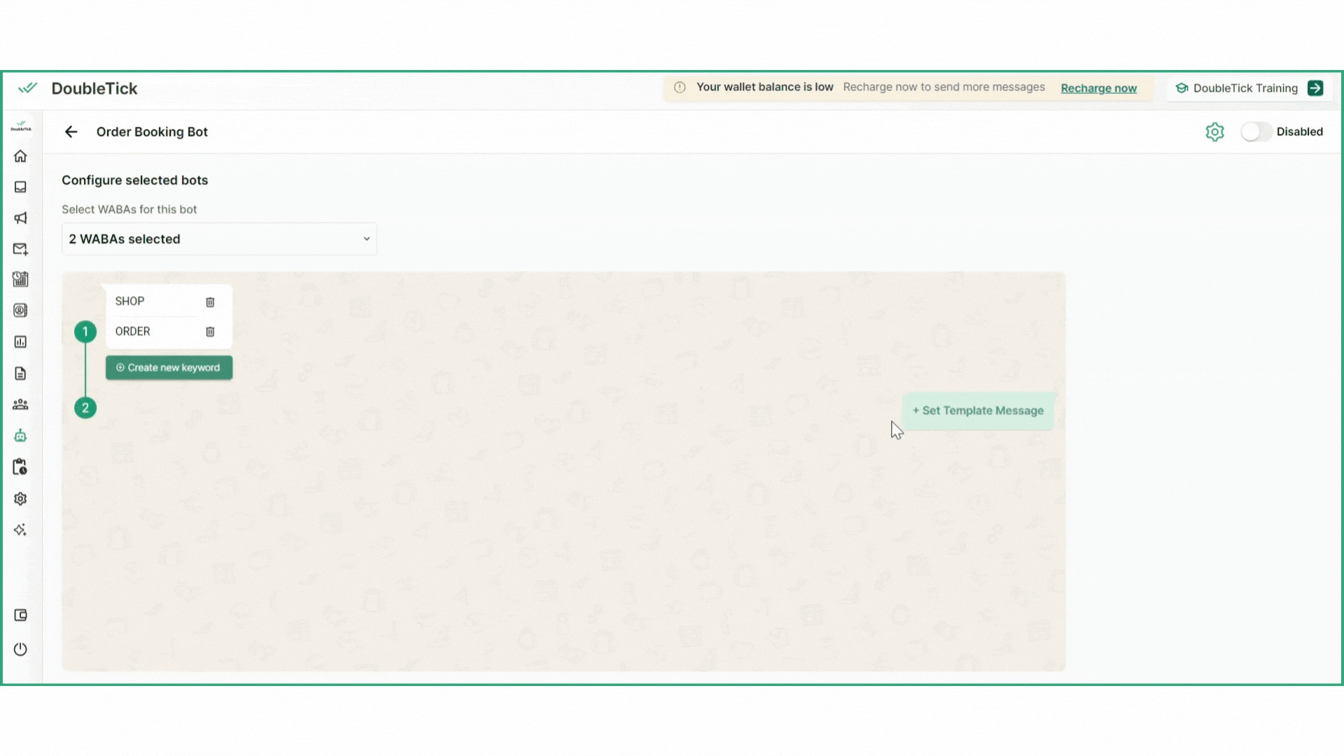 You can customize the keywords that activate your order booking bot. Initially, two default keywords are set: