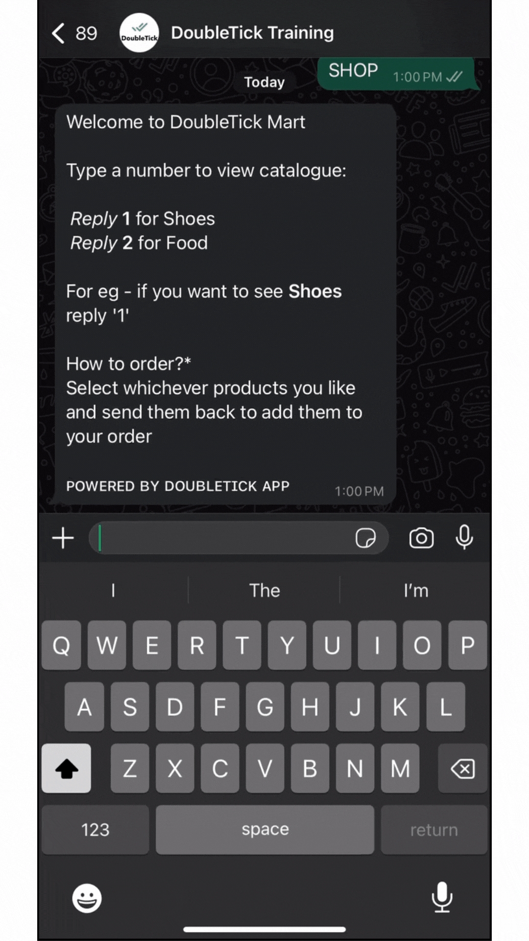 For instance, if there are two catalogues available, "Shoes" and "Food," users should reply with "1" for shoes and "2" for food