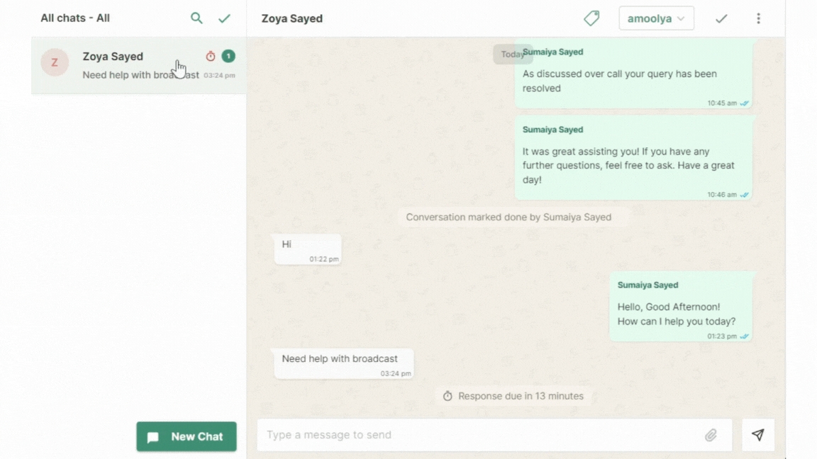 Additionally, the response due time will also be visible directly on the chat interface for quick reference.