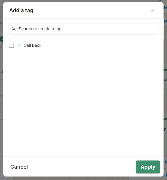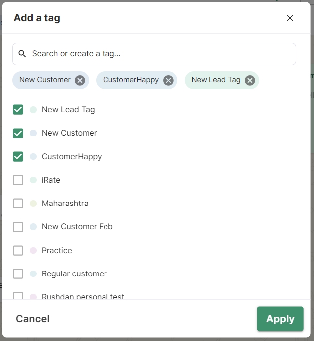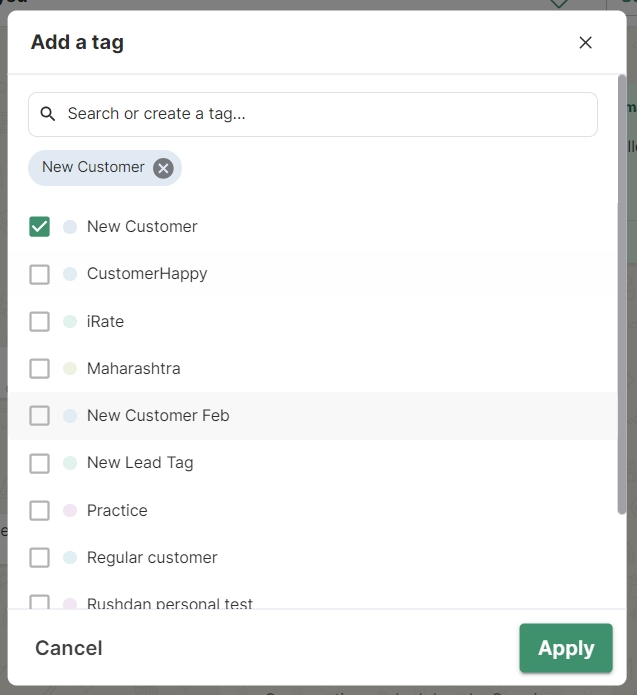 To apply a tag, choose the tag you want to assign to the customer, and then click on the "Apply" button.
