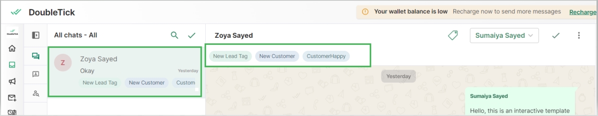 Tags are displayed on the header of the chat and on Chat View for easy identification and reference