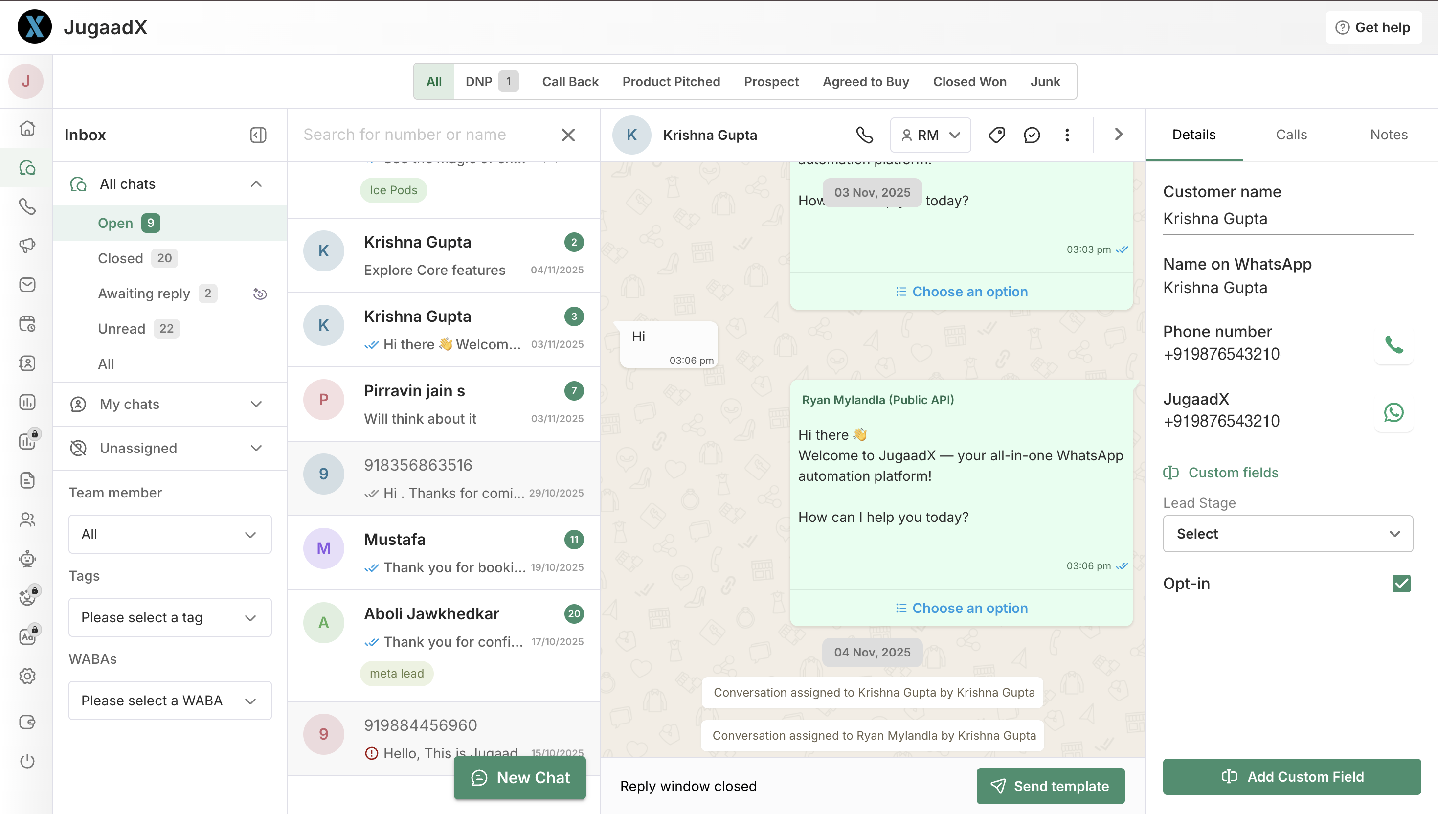 Learn how to start a new chat with customers on JugaadX. Follow our step-by-step guide to initiate a direct conversation with your customer.