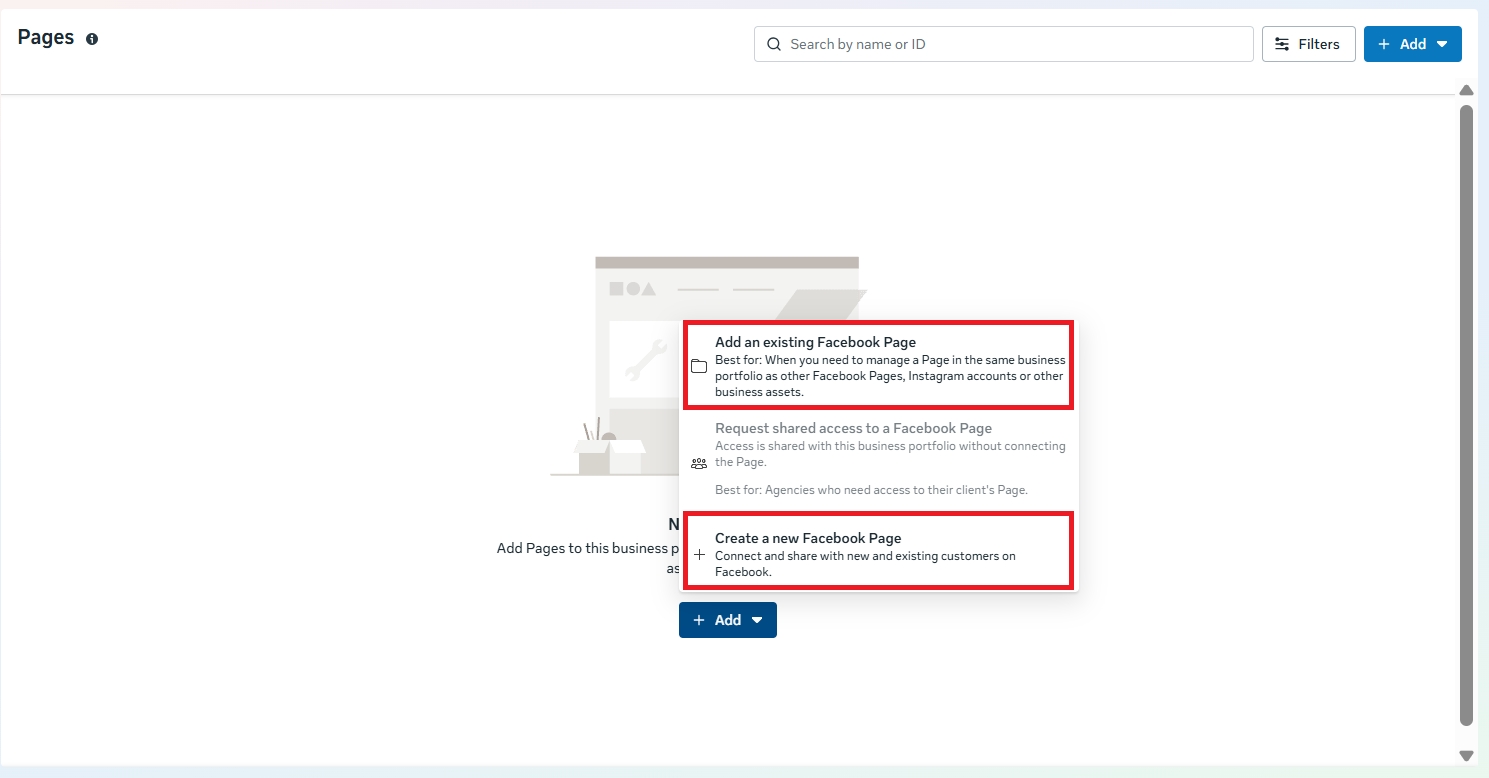 Choose Add a Page or Request Access