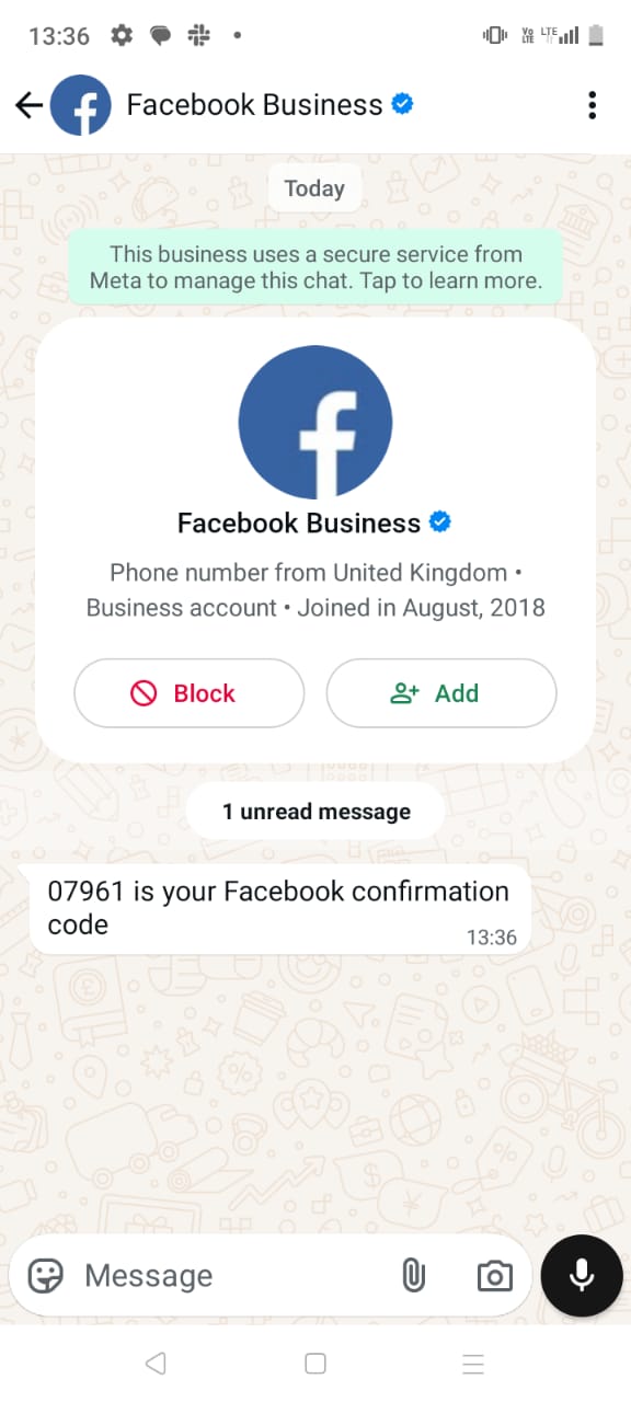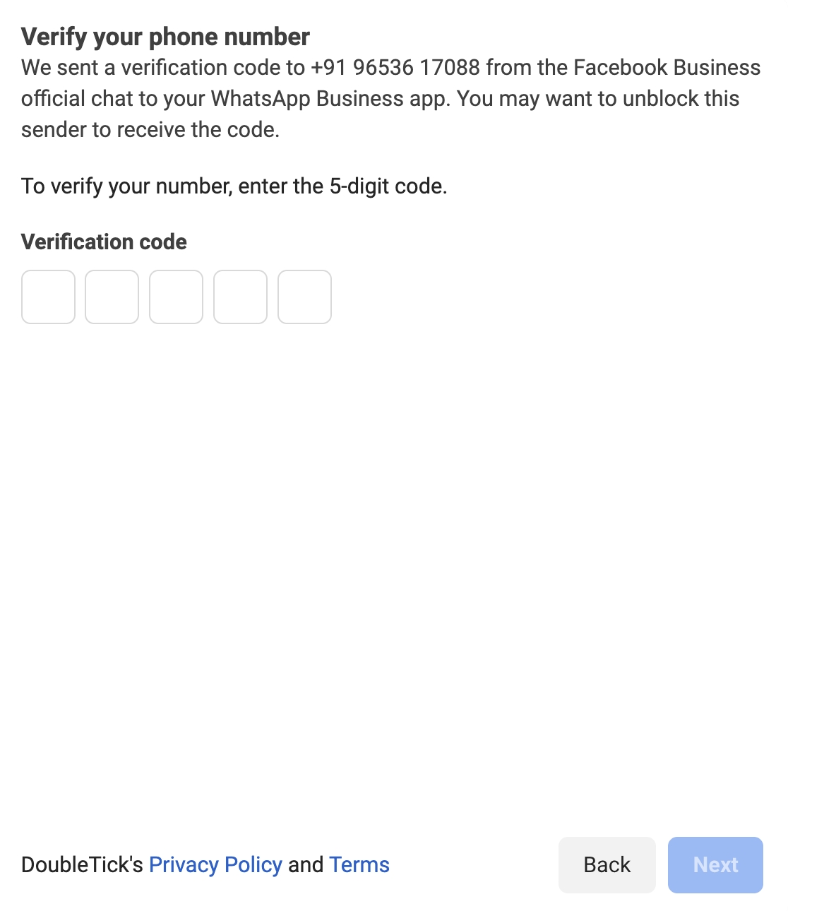 A 5-digit OTP will be sent on your WhatsApp Business App.