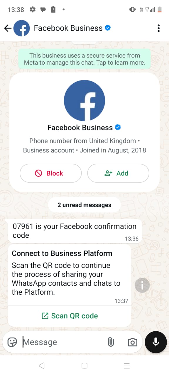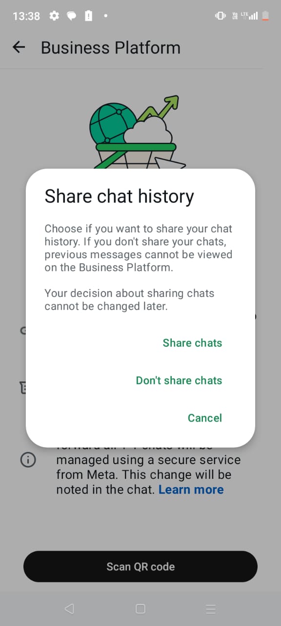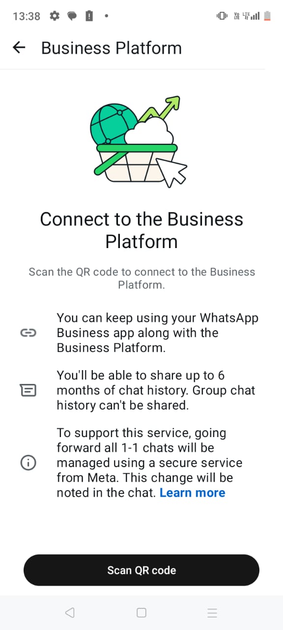 A QR code will appear → Scan the QR using your WhatsApp Business App.