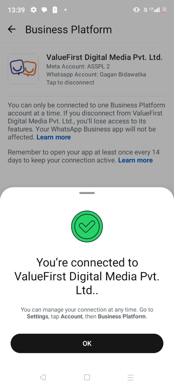 Setup complete — you can now use the number on both App and API. You're now live on Co-Existence with JugaadX!