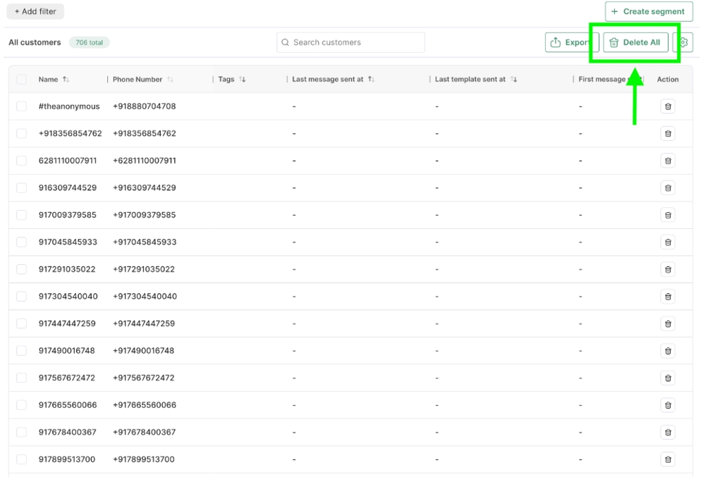 a. In the Customers tab, click on the Delete All button located in the top-right corner.