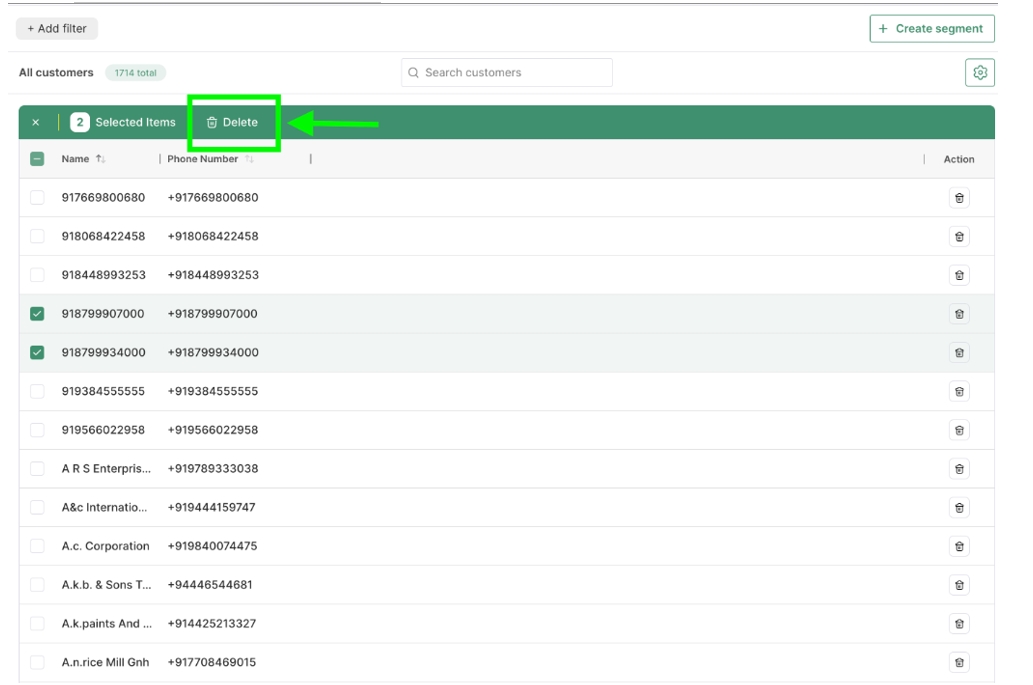 3. Deleting a Cohort of Customers Using Filters