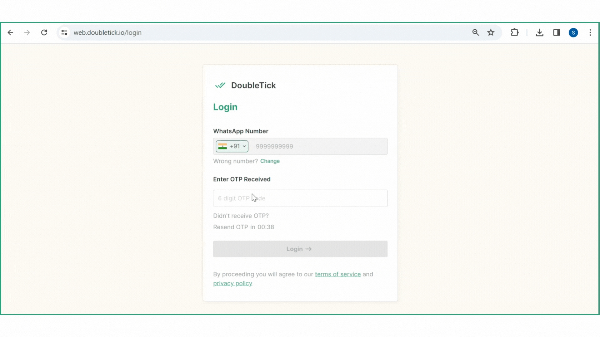 Choose the country code from dropdown and input the phone number associated with your payment account that you provided during the signup process (Enter your registered number), then click on the 'Login' button