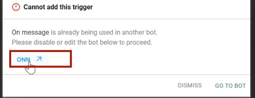 When the error occurs, a popup will appear displaying the name of the bot that already uses the conflicting keyword.