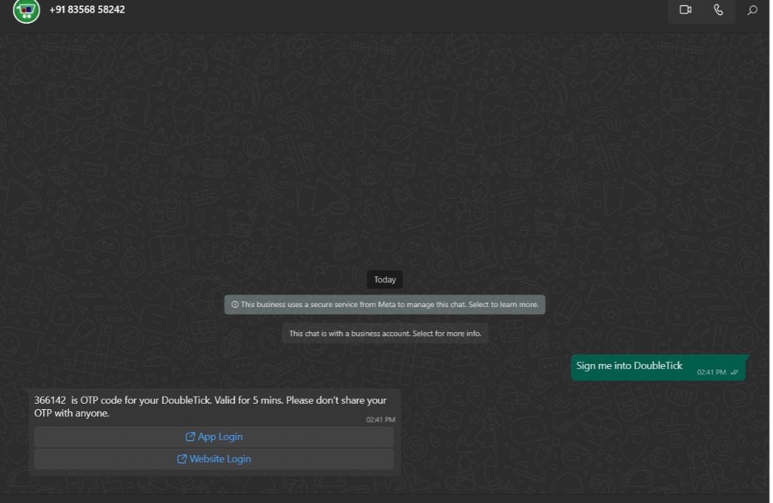 Click "Continue Chat," and you will receive the OTP directly on WhatsApp