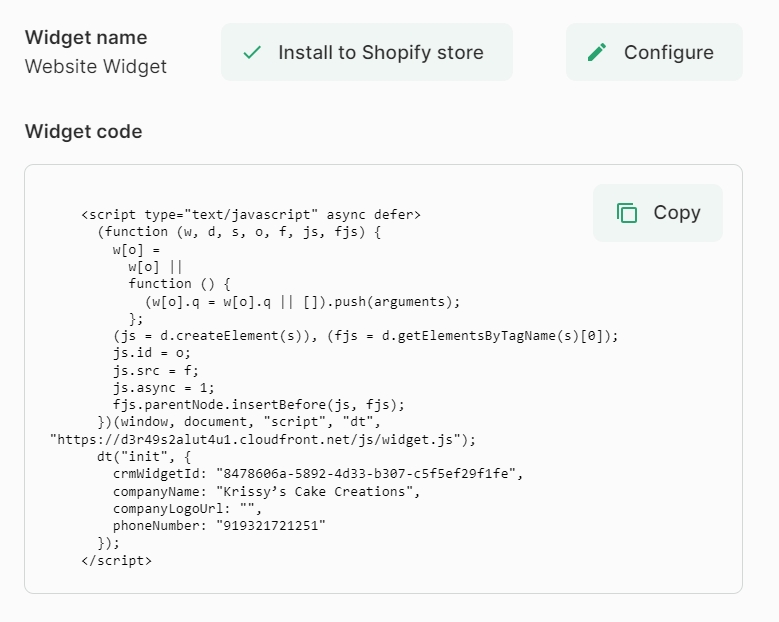 A widget code will be generated, which you need to copy and implement on your website.