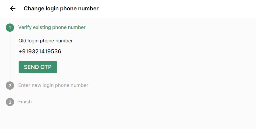 In case you do not receive an OTP, choose the "Resend" option. It will prompt you to enter the new login phone number. Input the new number and click on SEND OTP button.