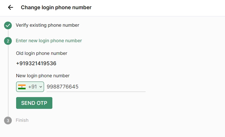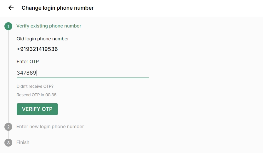 Note: Changing phone number will trigger an OTP. Ensure you have both numbers with you during the process.