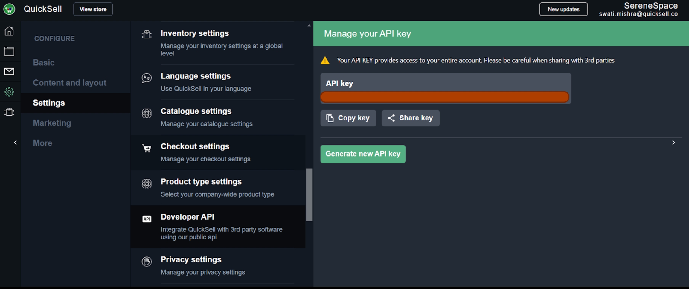 Once generated, copy the API key.