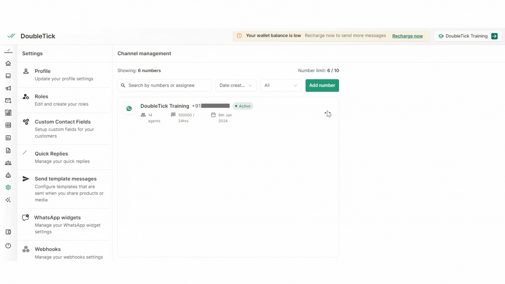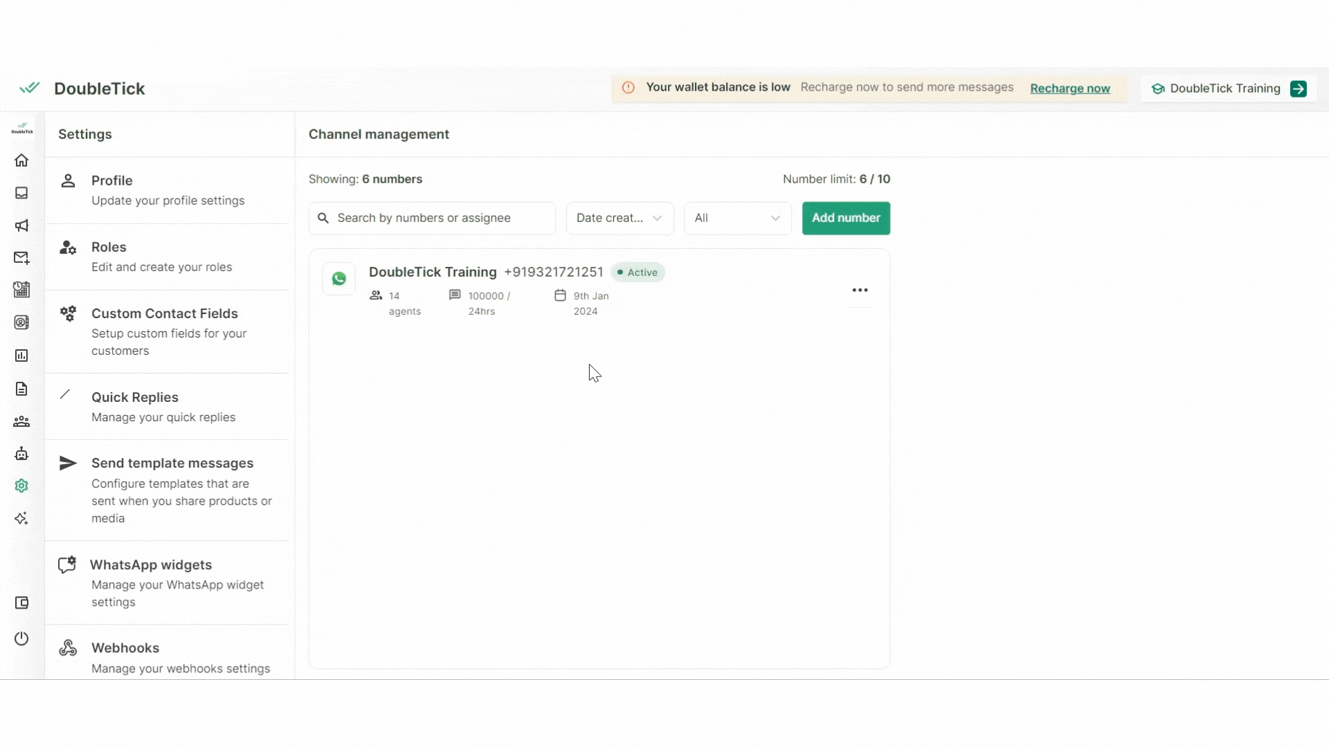 Number of Agents: Keep track of the total number of agents added to your WABA channel for efficient team management