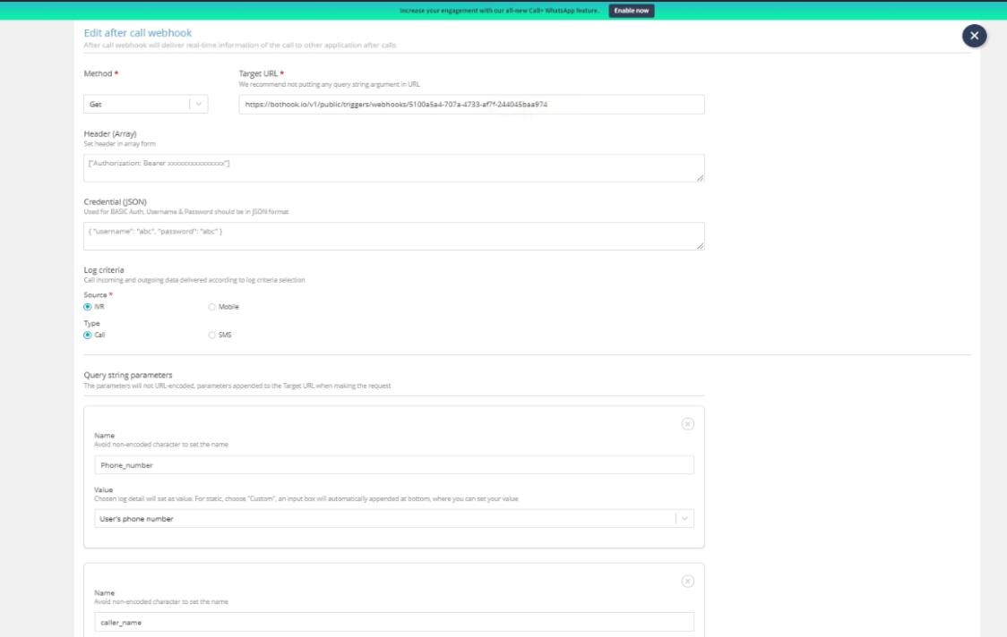 This step ensures that any activity happening on My Operator gets captured in the webhook and transmitted to JugaadX.