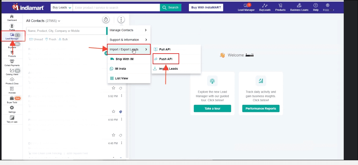 Click on Import/Export Leads
