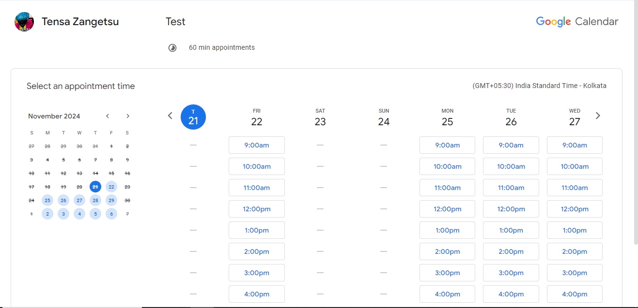 Google Calendar is at the core of this workflow. It provides the interface where users or clients can book their appointments.