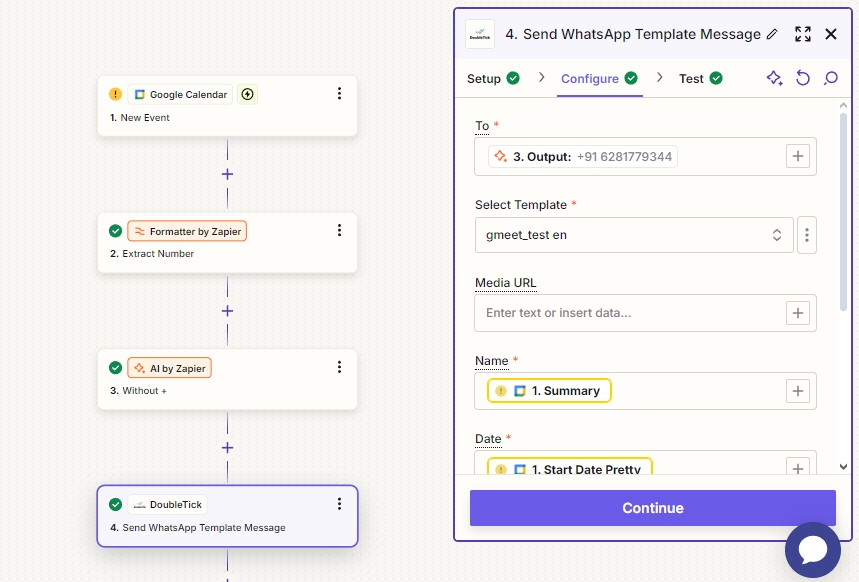Map Google Calendar data (e.g., appointment date, time, and client name) to the Template fields in JugaadX.
