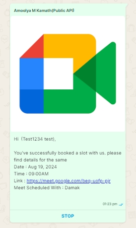 JugaadX will send appointment confirmation messages automatically when a booking is made.