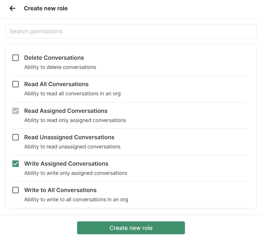 Select the options you wish to include in your custom roles and click on Create new role button