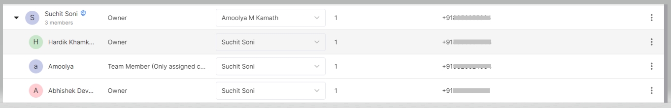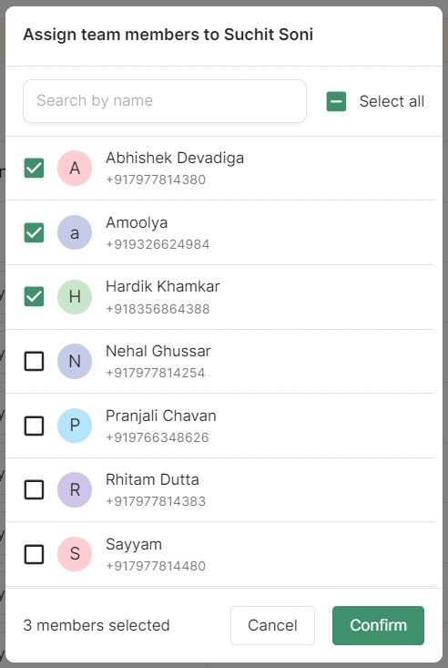 Now, assign team members to the new reporting manager by selecting one or multiple team members as needed