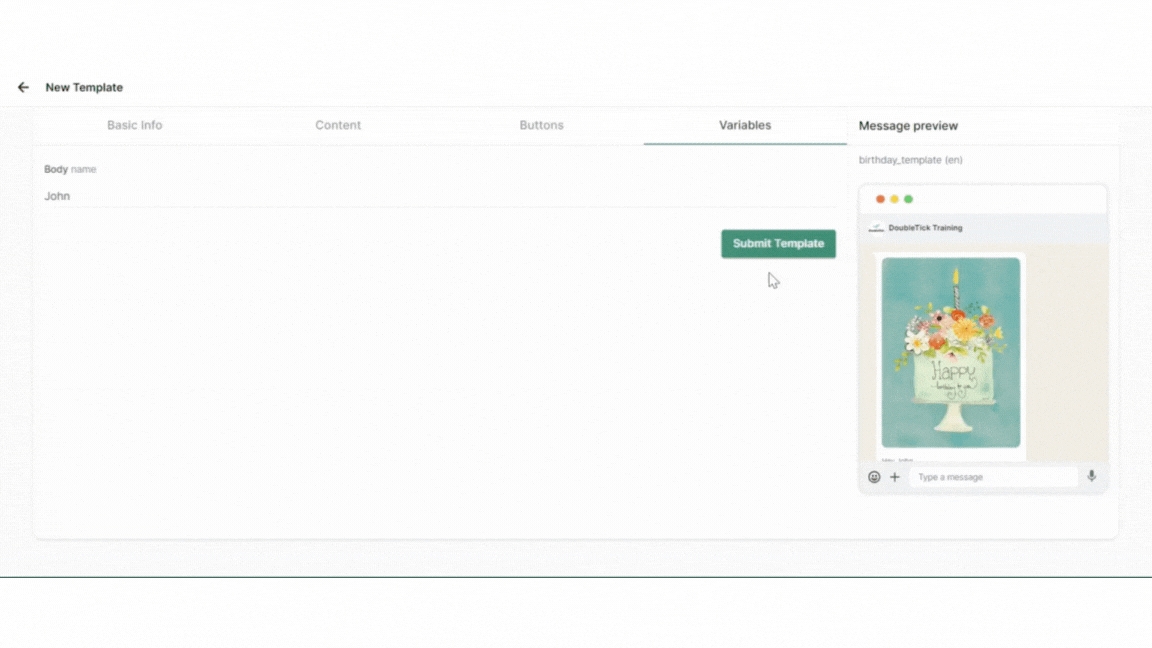 After entering all the variabe details, proceed by clicking on the "Submit Template" button.