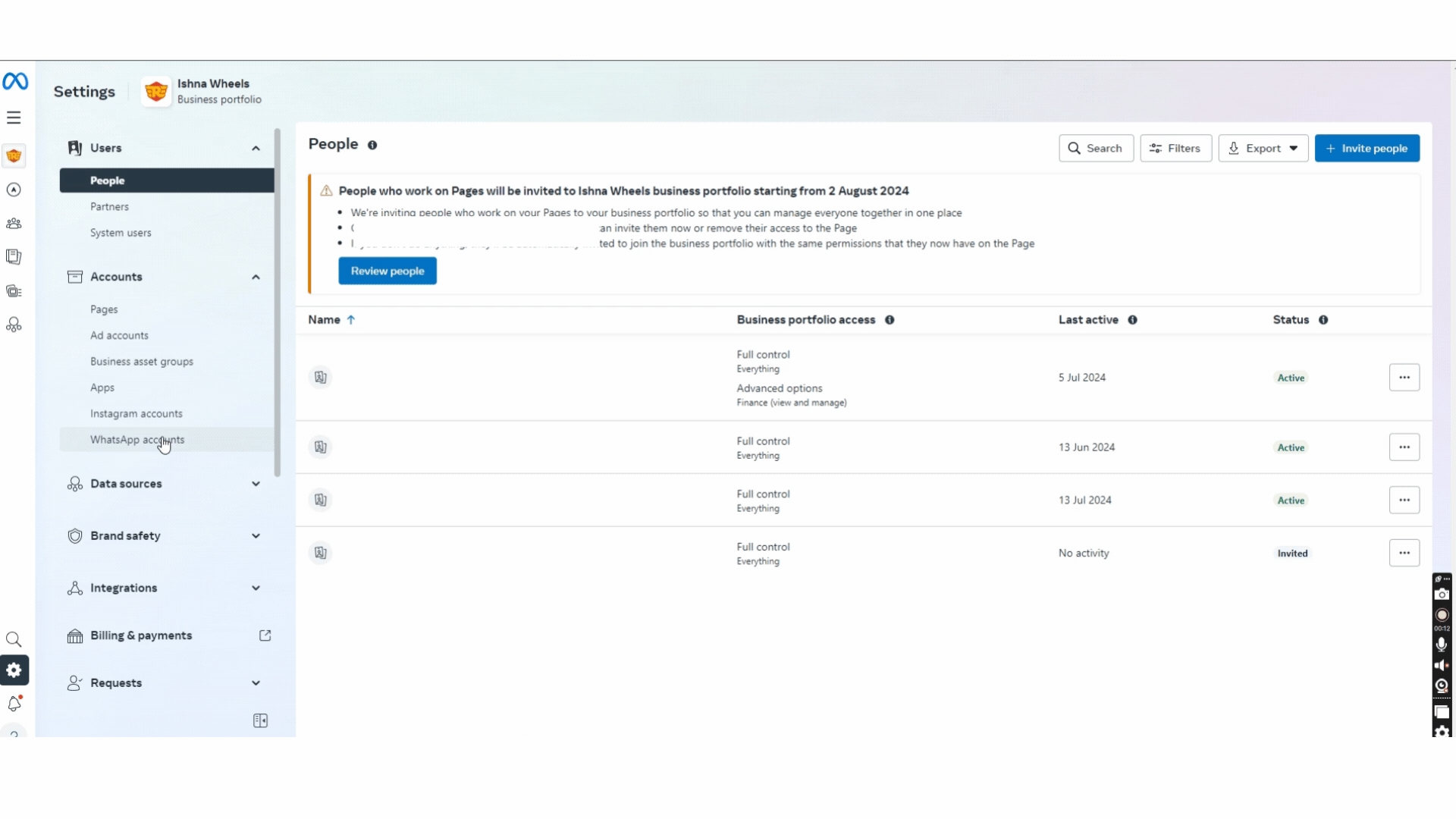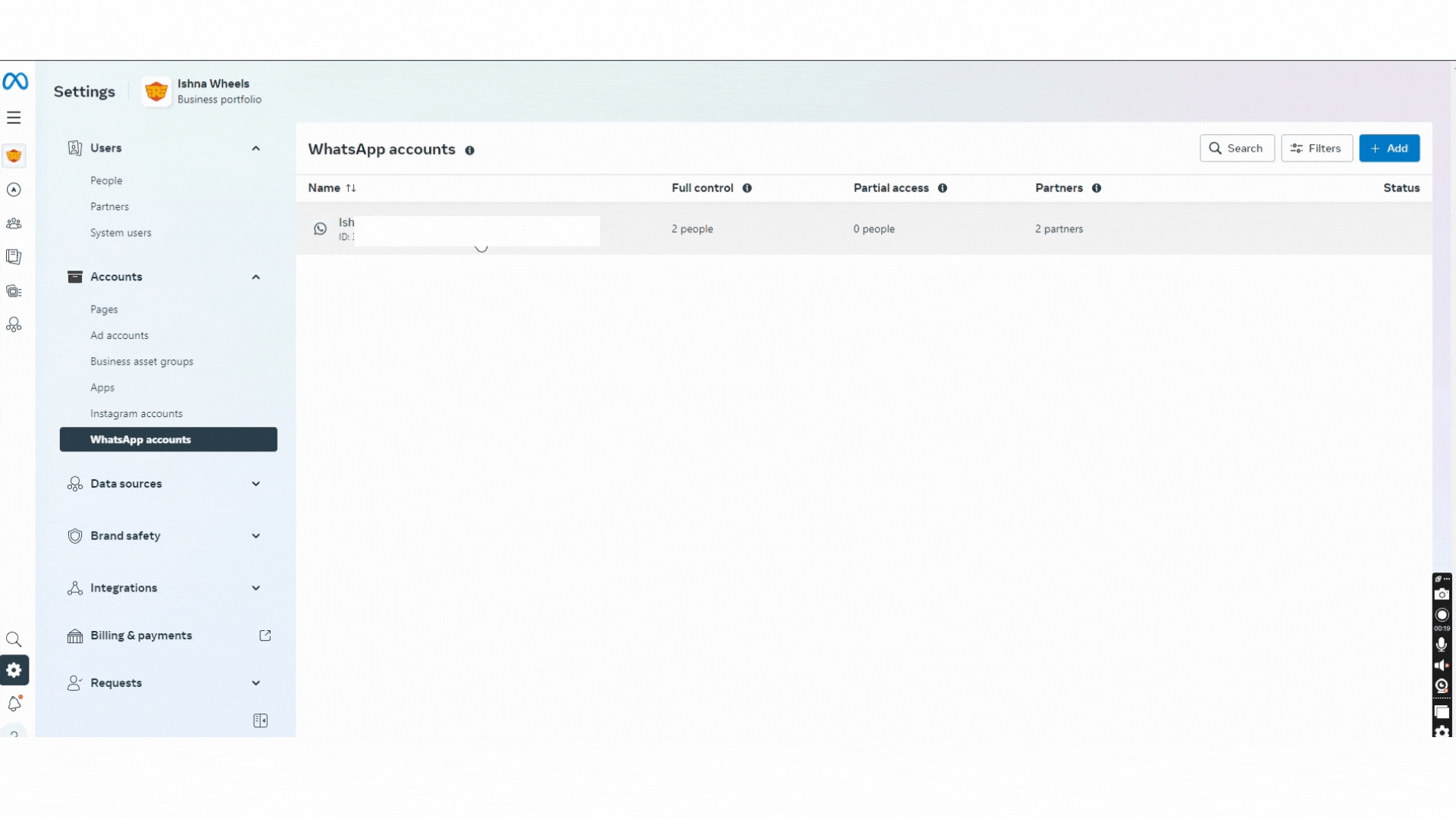 Step 2: Go to the "Accounts" tab and select "WhatsApp Accounts."