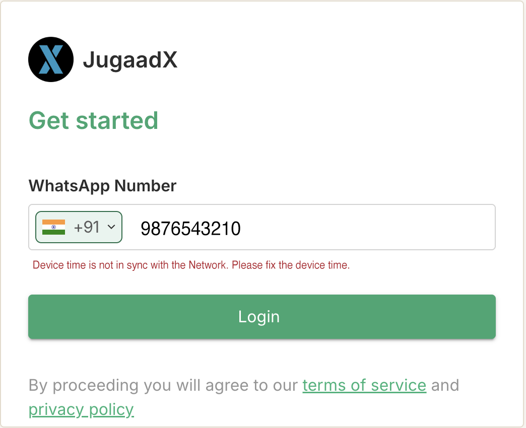 If you see the message: “Device time is not in sync with the Network. Please fix the device time.” while trying to log in to your JugaadX dashboard, don’t worry — this is a simple issue that can be fixed in a few steps.