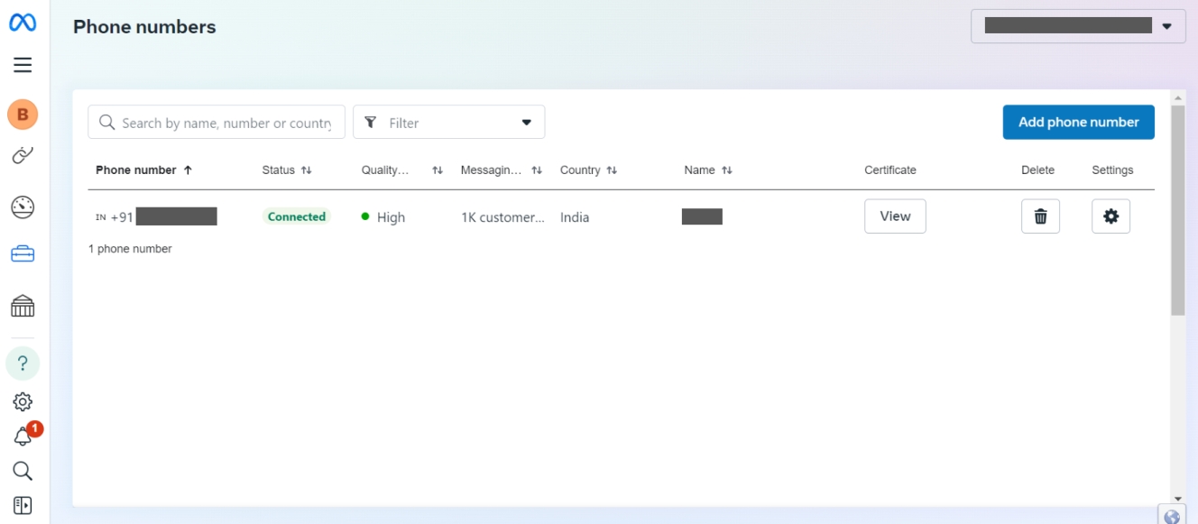 To see your business phone number's status, quality rating, and messaging limits, go to WhatsApp Manager > Account Tools > Phone Numbers in WhatsApp Manager.